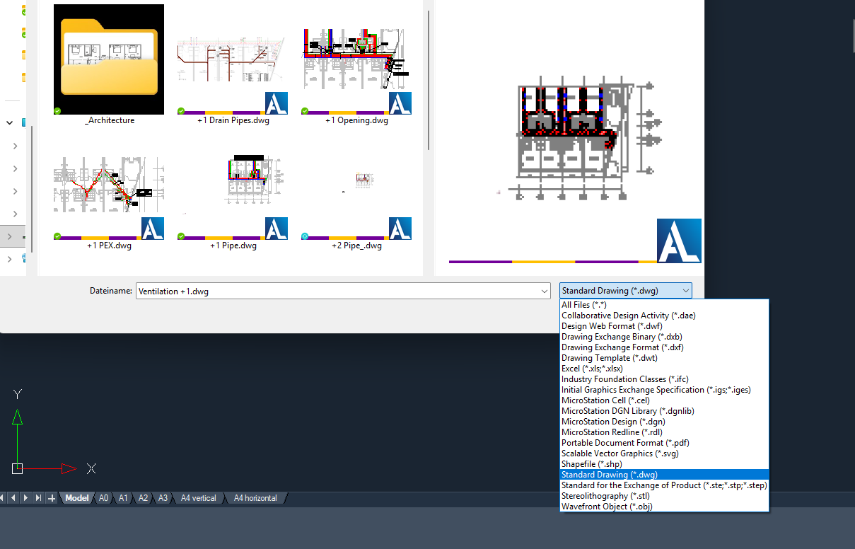 Diese Formate werden in ALCAD Standard nicht unterstützt, jedoch in allen anderen Versionen.