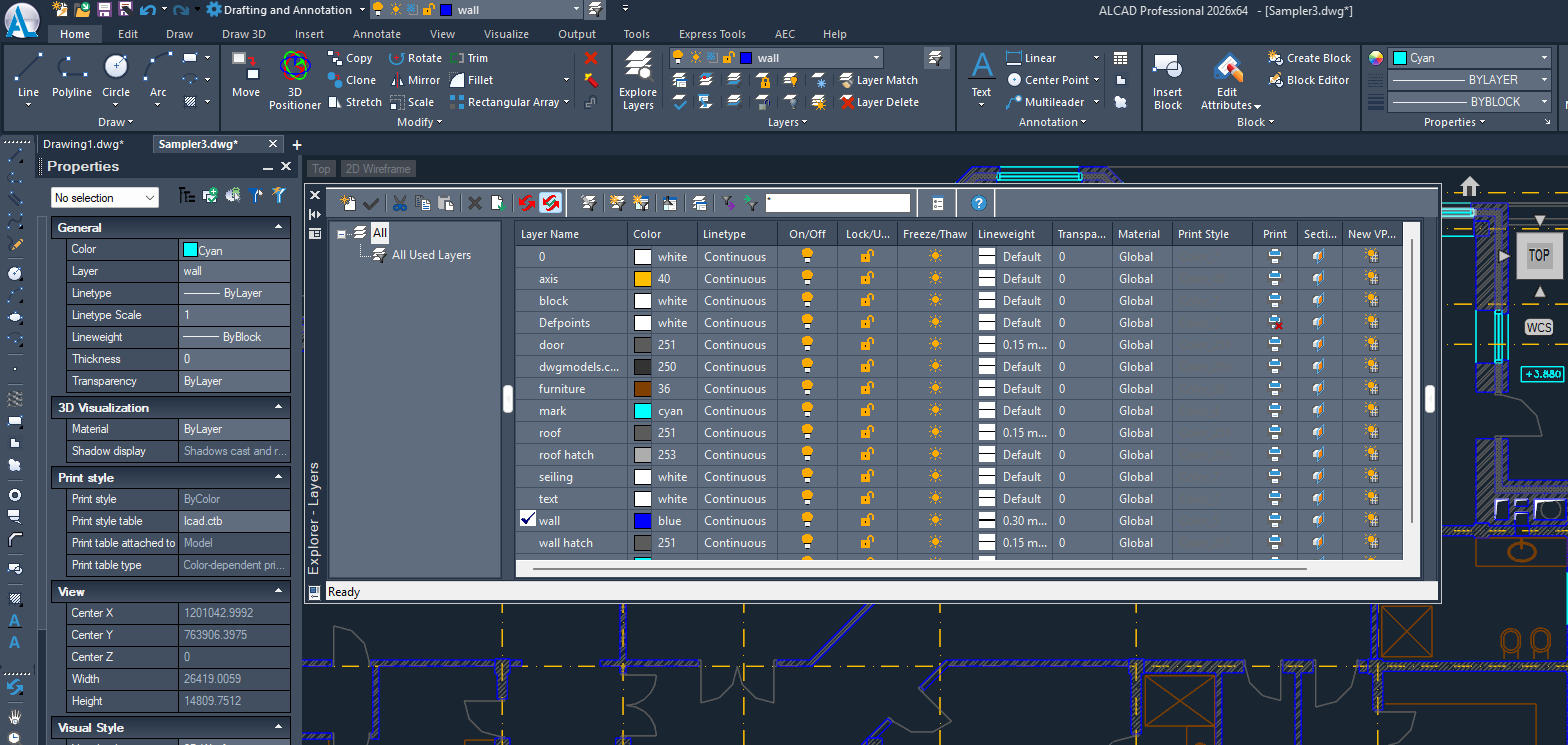 Die 3D-Architekturfunktionen sind ebenfalls im Preis inbegriffen. Erstellen Sie mühelos Wände, Treppen, Türen, Fenster und vieles mehr in 3D oder nur für den 2D-Gebrauch.