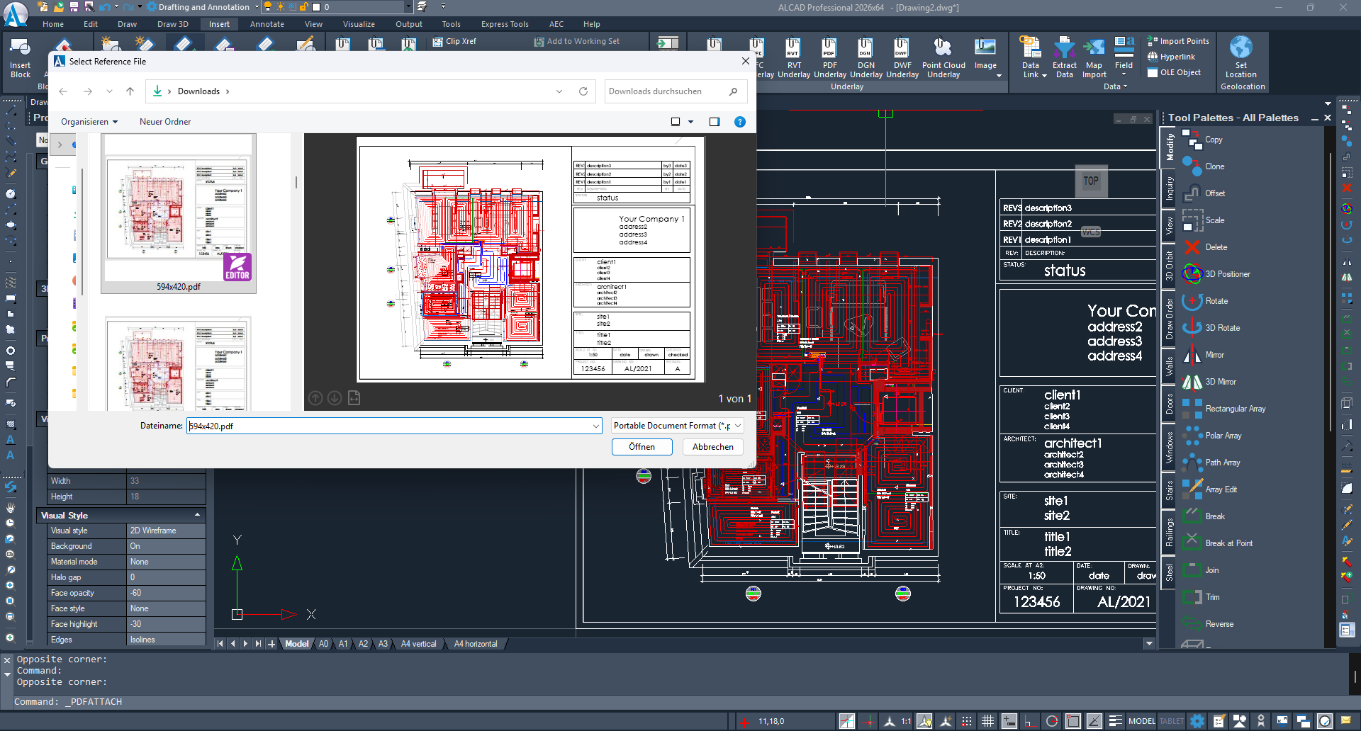 Das in ALCAD enthaltene Tool PDF2DWG konvertiert technische Zeichnungen im PDF-Vektorformat in das DWG/DXF-Format als bearbeitbare Objekte.